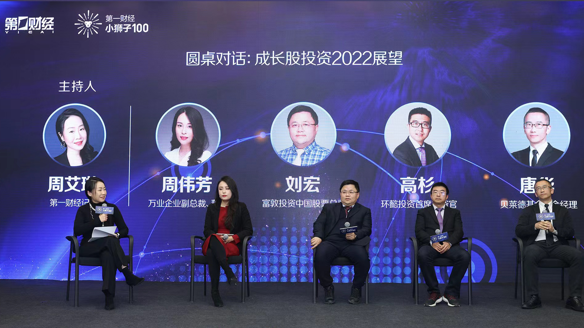 不过,随着部分景气股估值、股价的不断抬升,预期差变得越来越小。2021年第四季度,新能源车、光伏行业的估值回调似乎已经反映了市场的担忧。2022年,成长股投资会是怎样的格局?还有哪些赛道可以挖掘超额收益?在日前举行的第一财经小狮子100指数发布会上,贝莱德基金基金经理唐华,富敦投资管理中国区股票投资总监刘宏,环懿投资实控人、首席投资官高杉,万业企业副总裁兼董秘周伟芳一同探讨了2022年成长股的投资机会。
