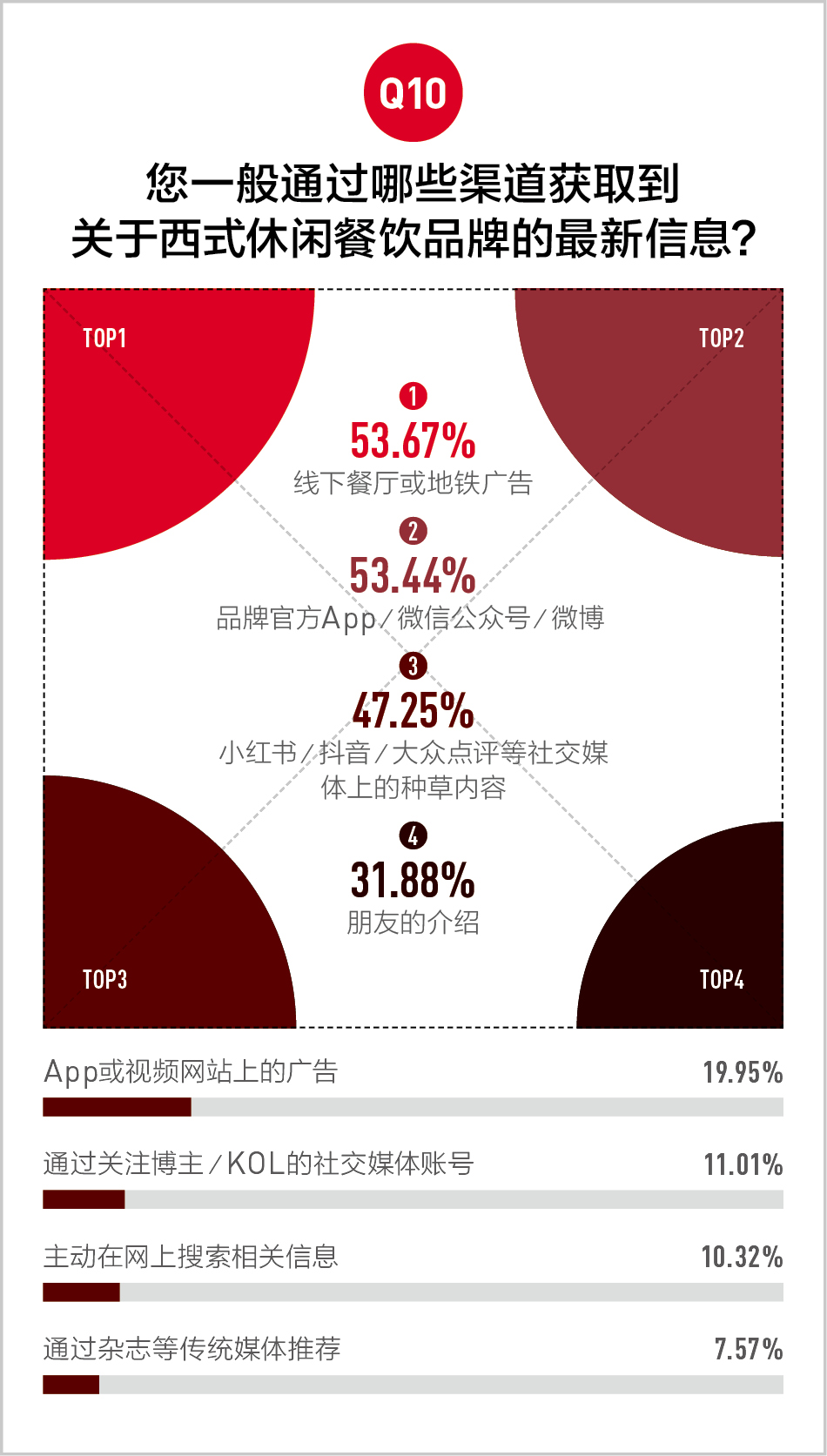 对于这个问题,我们从源头探寻——现在的消费者,会从哪些渠道认识并接受一个品牌?调研结果显示,除了线下餐厅这一“自有招牌”,品牌官方App、微信公众号、微博,以及小红书、抖音、大众点评这些新媒体平台,渐成主流,是消费者获取西式休闲餐饮最新信息的渠道。必胜客已经全面布局这些渠道,“隐藏吃法”“季节限定”等在年轻人心中颇有影响力的种草内容,展示了品牌颇为年轻、时尚的一面。