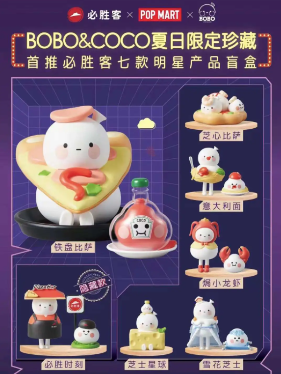 25岁的女生杨一青最近一次去“打卡”必胜客,就是被它与泡泡玛特限量联名盲盒吸引了。“必须端盒”,这是她当时在朋友圈的配文。杨一青从四五年前就是盲盒爱好者了,所以看到“盲盒”的营销创意,她有十足的动力购买。