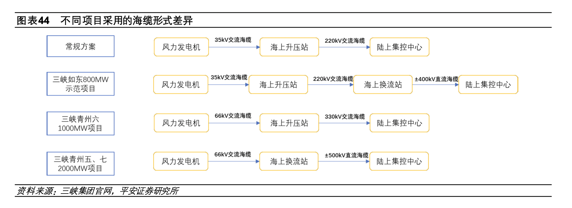 海缆方面,2021年东方电缆(603606.SH)完成越南BINH DAI海上风电35kV海底电缆交付。随着海上风电单体规模的增大以及离岸化发展,未来一方面直流海缆的应用比例将提升,另一方面交流海缆的电压等级也有望提升,无论直流送出方案还是更高电压等级的交流送出方案都将增加海缆技术难度,有利于龙头企业维持甚至提升市场份额。