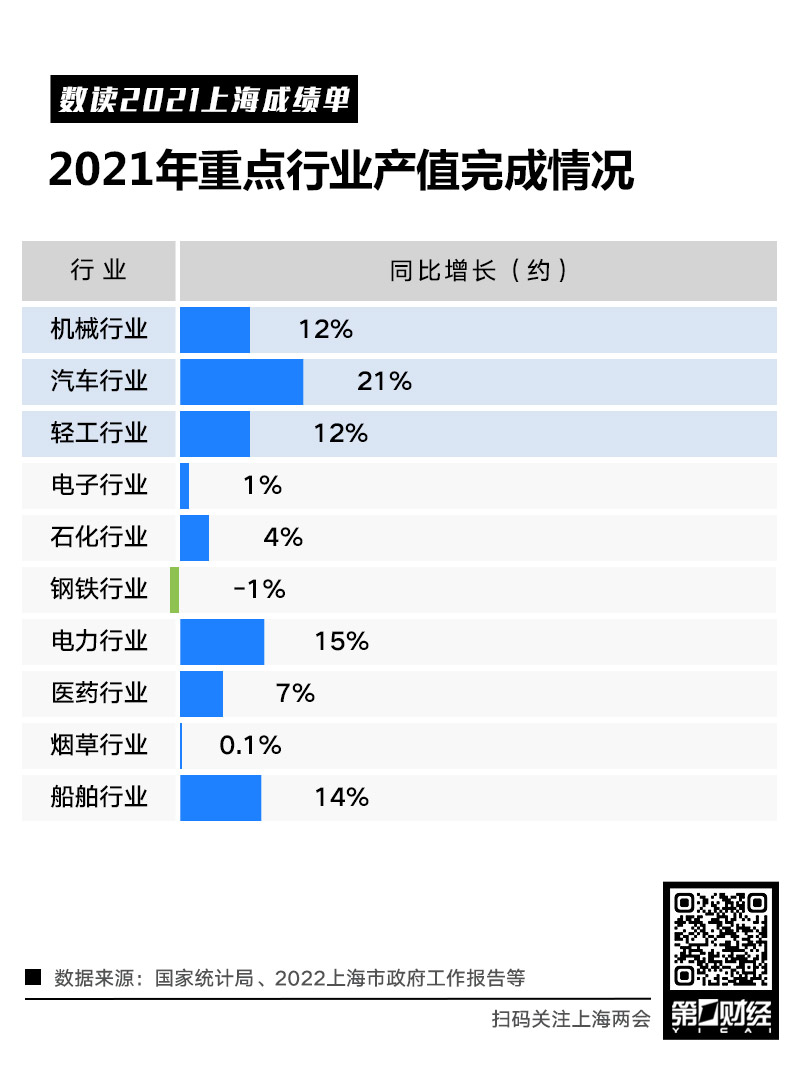 仅以汽车行业来看,2021年,上海汽车行业产值可比增长21.1%,拉动规上工业4个百分点。其中整车产值增长35%。
