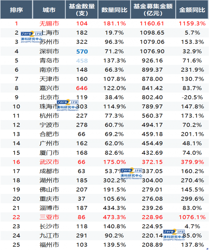 2021年中国股权投资市场新募集基金部分城市对比(按募集金额排序)