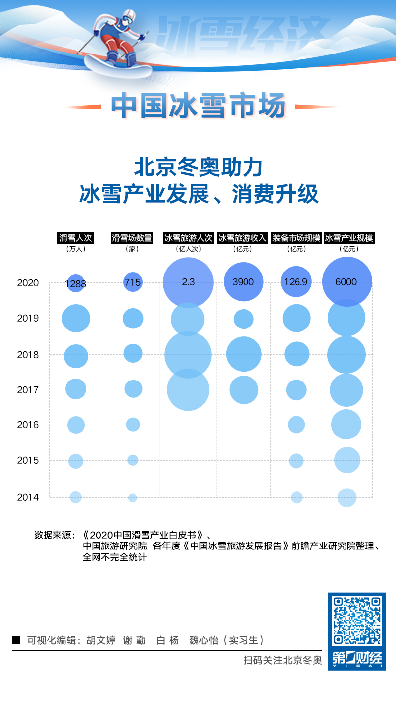2015年,北京携手张家口获得2022年冬奥会举办权,大大带动了冰雪产业的发展。报告显示,从2014年到2019年,不管是滑雪人次还是滑雪场数量,几乎都翻了一番。同时,中国冰雪产业总规模从2014年的1892亿元增长至2019年的4235亿元,是全球滑雪市场中唯一一个快速增长的市场,在此期间,市场装备规模实现了近四倍的增长。《中国冰雪旅游发展报告2020》显示,2018至2019冰雪季,中国冰雪旅游人数达到2.24亿人次,冰雪旅游收入约为3860亿元,预计到“十四五”规划末期的2025年,我国冰雪旅游人数将超过5亿人次,冰雪旅游收入超过1.1万亿元,冰雪旅游将成为我国冬季旅游和冰雪经济的核心引擎。