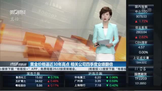 昨天,贵金属板块跳空上涨,其中黄金板块涨幅居前。消息面上,黄金指数自1月28日至2月14日累计涨幅超过8%。机构资金大幅流入贵金属、黄金等板块。有色金属板块获机构资金净流入超9亿元。统计显示,黄金、工业金属板块开年获北上资金加仓且2021年第四季度净利润翻倍股有10只,包括西部黄金外,湖南黄金、紫金矿业、铜陵有色等。