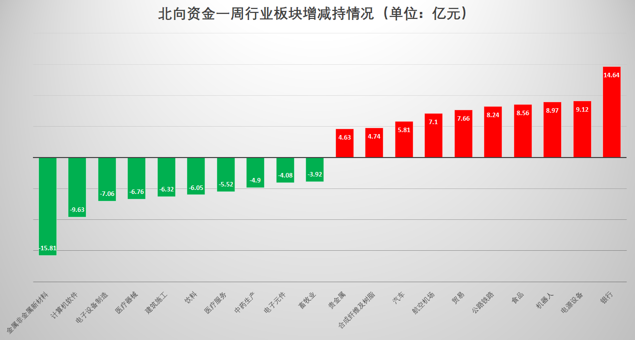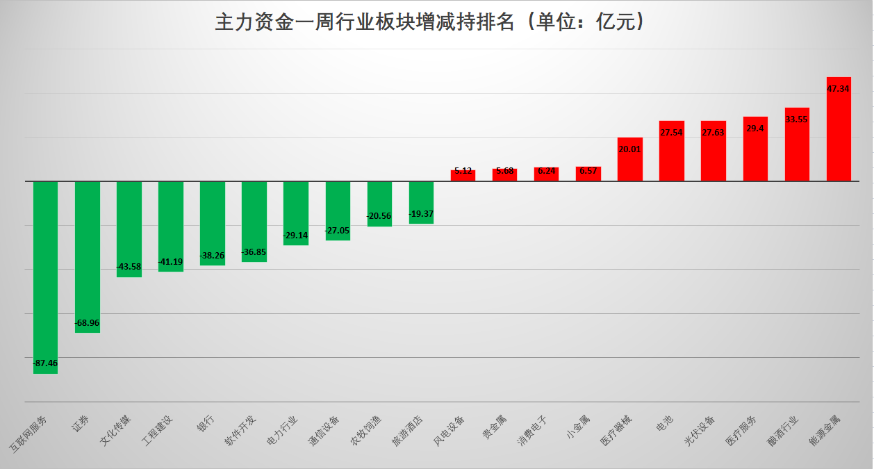 资金流向上,本周主力资金对能源金属、酿酒行业、医疗服务等板块颇为青睐,对互联网服务、证券、文化传媒等板块则大幅减持;本周北向资金对银行、电源设备、机器人等板块颇为青睐,对计算机软件、电子设备制造等板块则大幅减持。