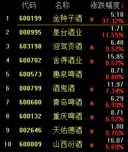 个股表现上看,金种子酒表现尤其突出。本周连续三日涨停,一周累计涨幅达到37.32%。
