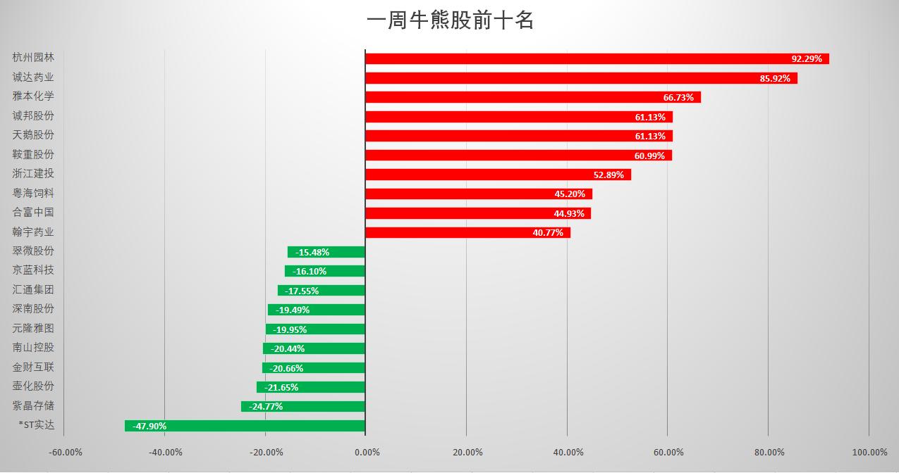 本周建筑板块表现良好,一周涨幅达到6.63%。从个股表现上看,杭州园林本周涨幅达到92.29%,位居本周牛股榜之首。除此之外,诚邦股份、浙江建投一周涨幅均超50%,元成股份周涨幅则达到38.24%。