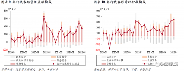 2021年12月份,海关进出口顺差达到创纪录的945亿美元,但在2022年初未带来相应的货物贸易结售汇和收付款大顺差。