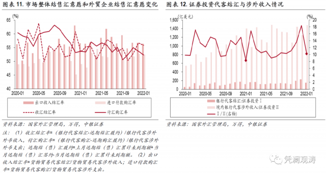 货物贸易结售汇顺差弱于预期,市场整体结汇意愿强于上年同期,主要是因为证券投资主体结汇意愿明显增强