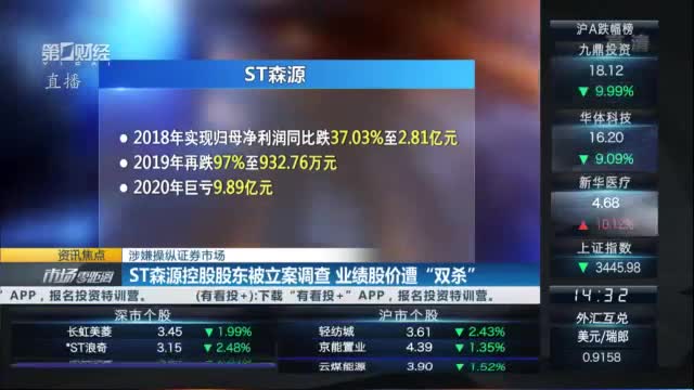 又一家上市公司控股股东被查。昨日晚间,ST森源披露,其控股股东河南森源集团有限公司收到中国证监会下发的《立案告知书》,因其涉嫌操纵证券市场,中国证监会决定对其立案。今天,ST森源股价一字跌停。