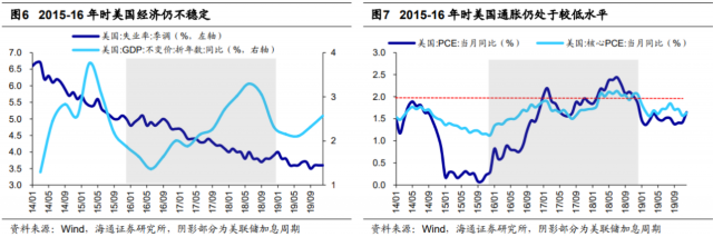 和前两轮加息周期相比,2015年12月首次加息时美国经济背景实际较为脆弱,虽然15年时失业率的持续下降显示美国劳动力市场在持续改善,但当时的其他经济指标难言强势。例如美国实际GDP同比在2015Q1达到高点后持续降至2016Q2才企稳,同时2015年大宗商品价格的接连下探使得通胀也持续低于2%的目标,可见2015年12月的加息更多是出于三轮QE后货币政策正常化的需要。