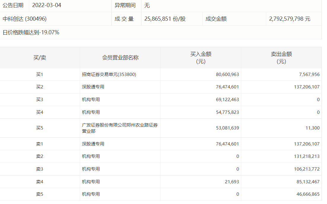 3月4日,中科创达放量大跌19%,盘中触及跌停。截至收盘,该股报105.36元,成交额27.93亿元,总市值447.8亿元。