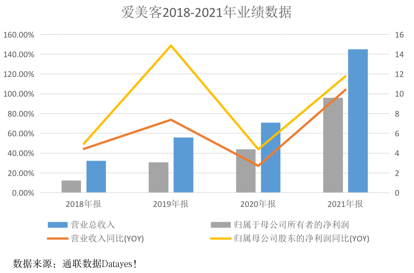 根据通联数据Datayes!,2021年,爱美客实现营业收入14.48亿元,同比增长104.13%;实现归母净利润9.58亿元,同比增长117.81%;实现扣非归母净利润9.14亿元,同比增长115.55%。