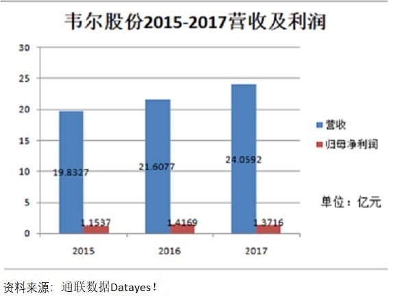 2017年,在成立十周年之际,韦尔成功登录资本市场,募得资金2.92亿元。不过,此时韦尔的营收规模并不算大。
