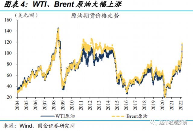 其中一个原因是,能源价格飙涨等,使得全球“滞胀”风险加速累积,美联储陷入政策两难境地。作为全球能源品、工业金属、粮食价格的主产区,俄乌局势恶化,直接打压上述商品的供给预期,进而大幅推升价格。其中,WTI、Brent原油均从俄乌战争前的90美元/桶,双双飙涨突破120美元/桶。以史为鉴,油价的惊人涨幅开始令市场害怕1970年代石油危机重现,对全球“滞胀”卷土重来的担忧急剧升温。