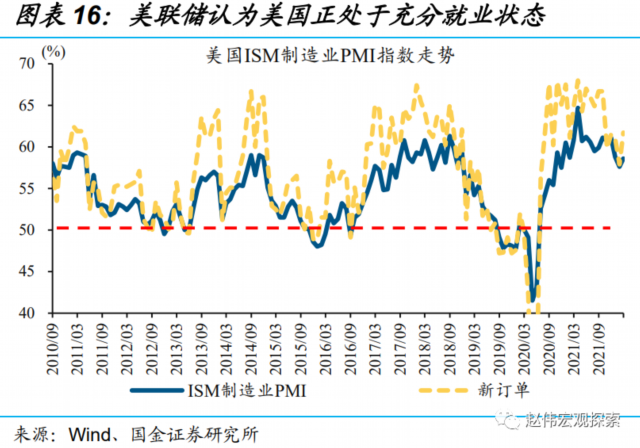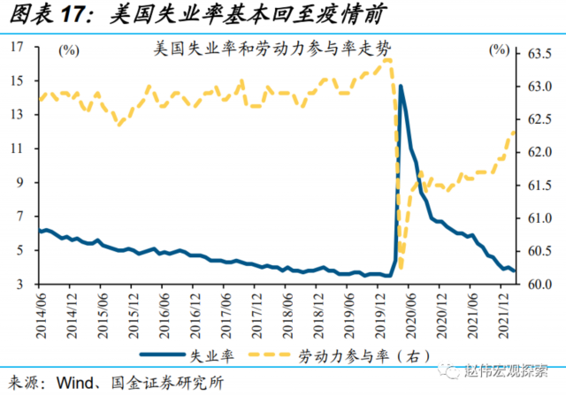 但美国经济维持较强韧性下,俄乌危机造成的短期冲击相对间接,对美联储政策正常化进度的影响,长短期效应或略有不同。近期,公布的宏观指标皆指向美国经济修复韧性较强,如2月PMI新订单重回60以上,2月劳动参与率上升的同时、失业率继续下降反映就业市场的加速修复等。美联储3月加息启动已成定局,后续时段需密切关注缩表进度及对全球资本市场的影响。
