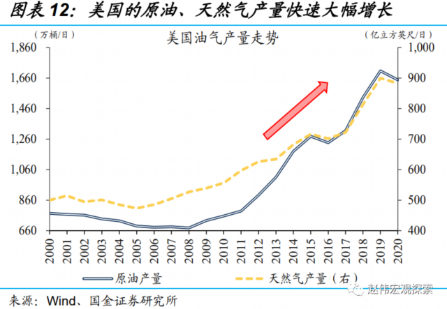 俄乌危机导致的油价暴涨,对美国通胀形势的影响较为直接。1970年代两次石油危机时期,美国作为当时最主要的能源进口国且能源自给率低,受到巨大冲击。但2012年页岩革命以来,美国的原油、天然气产量快速大幅增长,不仅实现了能源自给,还成为了全球最主要的油气出口国之一。因此,俄乌危机对美国的冲击,不会引发能源短缺问题,更多体现为通胀易升难降。