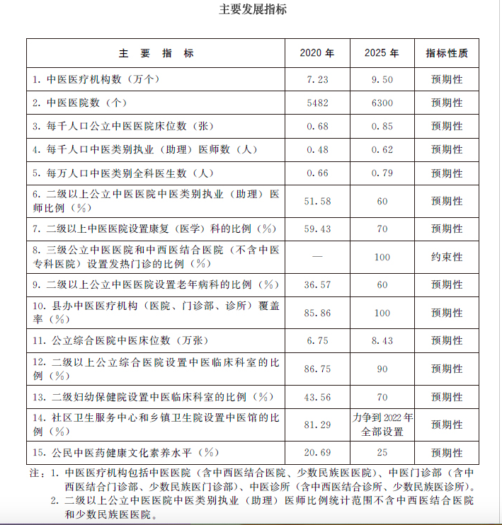 根据《规划》的发展目标,到2025年,中医药健康服务能力明显增强,中医药高质量发展政策和体系进一步完善,中医药振兴发展取得积极成效,在健康中国建设中的独特优势得到充分发挥。