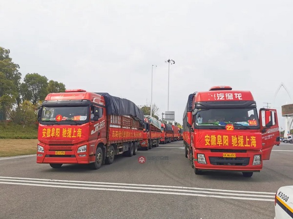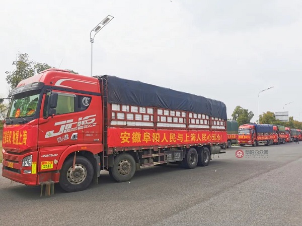 29日活动发起后,阜阳各部门迅速响应。经连夜调度,30日15时许,1000吨物资正式由阜阳出发,预计将在今晚抵达上海。