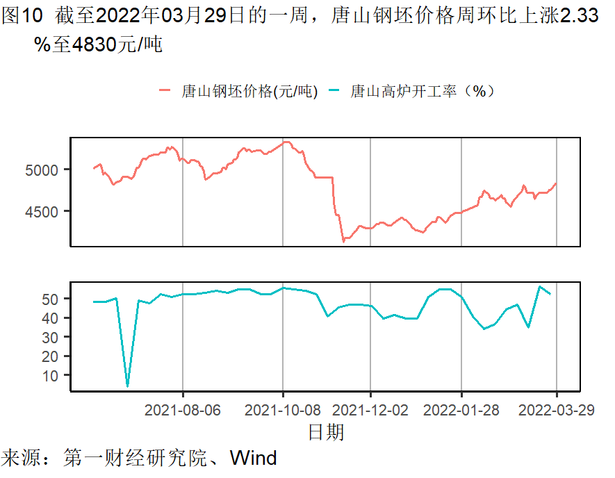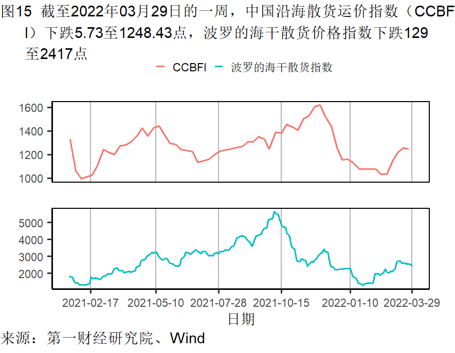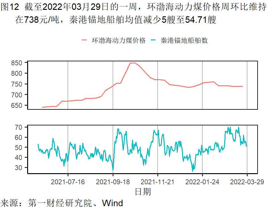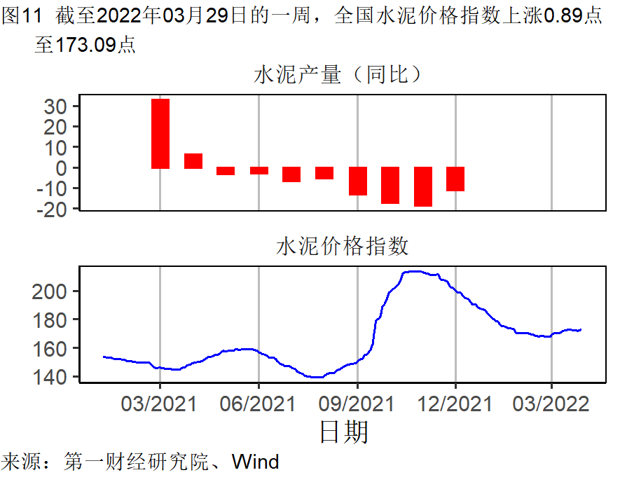 本周钢铁和水泥价格上升,唐山钢坯价格在截至3月29日的一周上涨了2.33%,过去一个月上涨6.15%,较去年同期上涨1.26%;水泥价格在截至3月29日的一周上涨了0.52%,过去一个月上涨了2.97%,较去年同期上涨16.62%。动力煤价格继续下降,过去一个月来下降了0.27%,较去年同期上涨了26.80%。