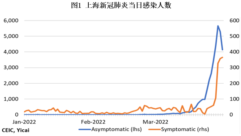 毫无疑问,疫情防控策略的变化是因为感染人数激增。目前上海的当日感染人数(包括确诊和无症状感染者)从3月24日的1624例增至3月31日的4510例,其中92%为无症状感染者(图1)。