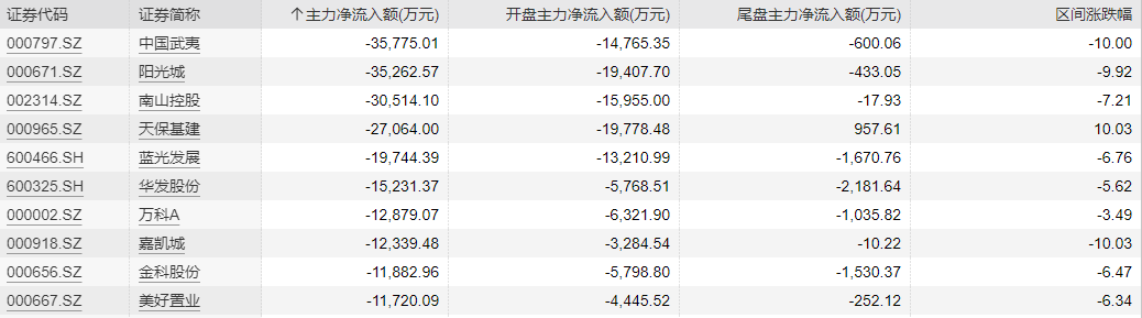 Wind数据显示,房地产板块今日遭主力大幅抛售。具体到个股来看,中国武夷、阳光城、南山控股均遭抛售超3亿元,天保基建、蓝光发展、华发股份、万科A、嘉凯城、金科股份等遭净流出额度居前。