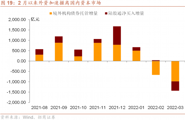 但另一方面,国际资本流出中国的情况得到了诸多数据的支持。3月官方储备规模为33731.59亿美元,环比下降258.33亿美元,今年以来我国外储累计下降537.49亿美元。3月陆股通净卖出规模为450.83亿元,境外机构减持人民币债券981.56亿元,合计减持人民币股债资产为1432.39亿元,今年以来累计减持人民币股债资产为1393.26亿元,这是2018年以来历史同期的最低水平。