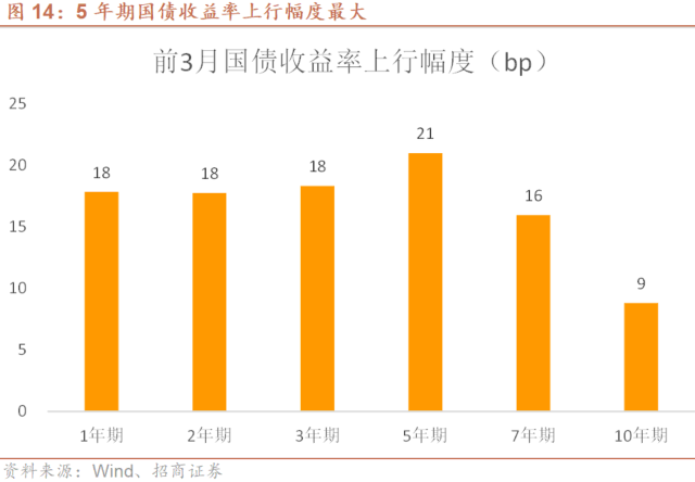 中美利差收窄可能将从两个方面影响国内市场收益率。一是汇率渠道。按照利率平价理论,若预期未来本币汇率贬值,那么当前市场利率应该上行。如前所述,2季度人民币汇率进一步贬值的可能性高,国内市场收益率将承受人民币贬值形成的上行压力。二是人民币债券需求下降形成的利率上行压力。2月以来,外资加速减持人民币债券,规模超过1000亿元。虽然外资对债券市场的影响力不及A股市场,但外资比较偏爱的1-5年期国债收益率今年以来的上行幅度明显高于7年和10年期国债。其中,今年前三月5年期国债收益率上行21bp,1-3年期国债均上行18bp,而7年期国债收益率上行16bp,10年期则仅为9bp。