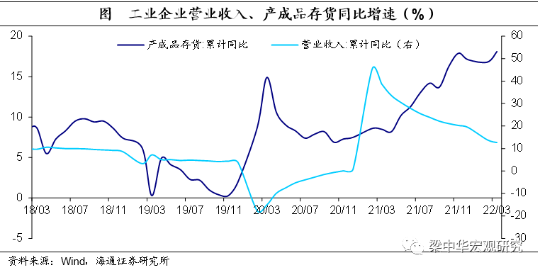 疫情下被动补库存。1-3月工业产成品存货增速为18.1%,较前月的16.8%有所提高,营业收入累计增速为12.7%,3月当月增速为10.8%,均较前月有所下降,这反映在疫情影响下生产消费暂缓、企业需求不足,叠加物流不顺畅,使得企业被动补库存。