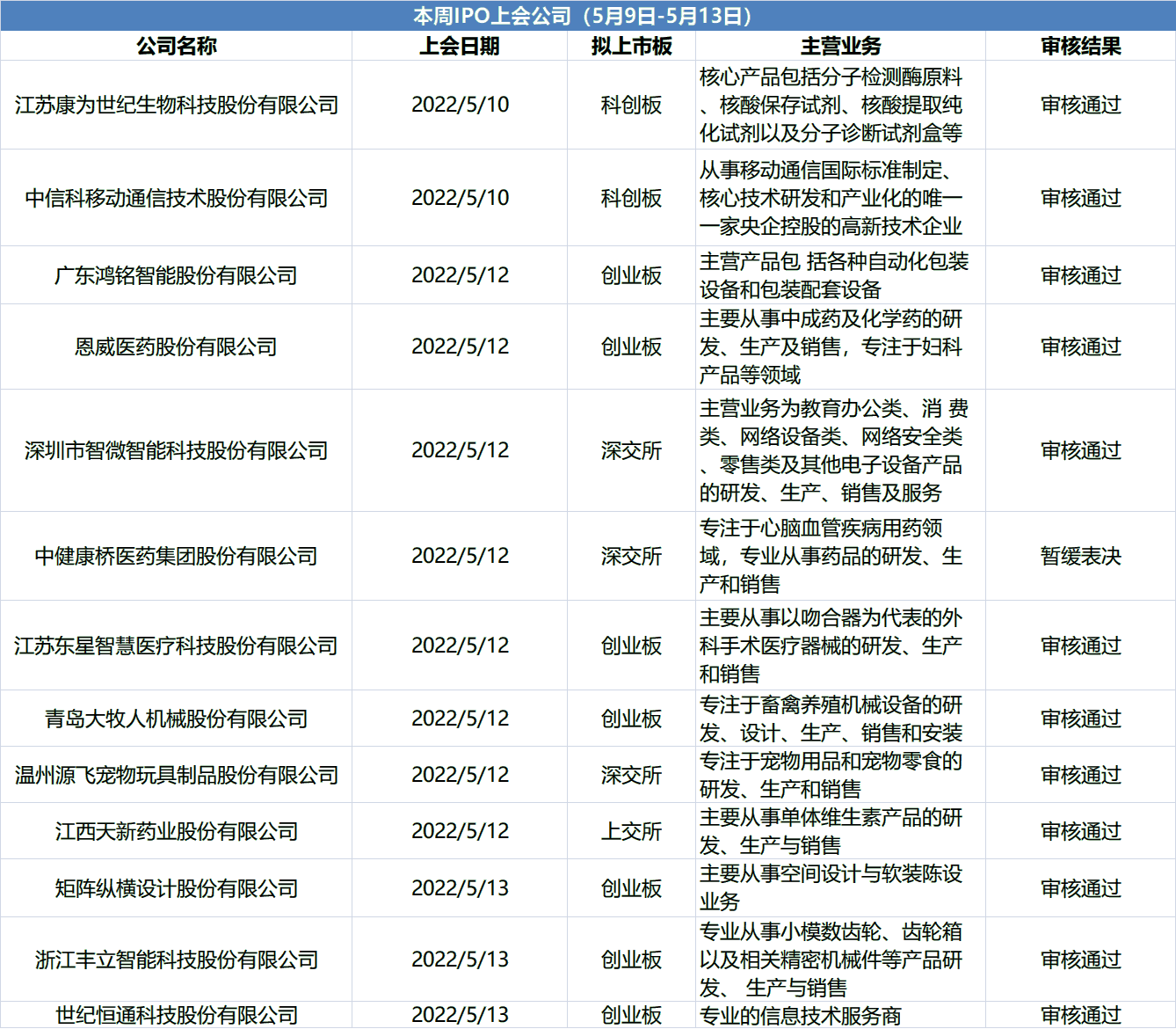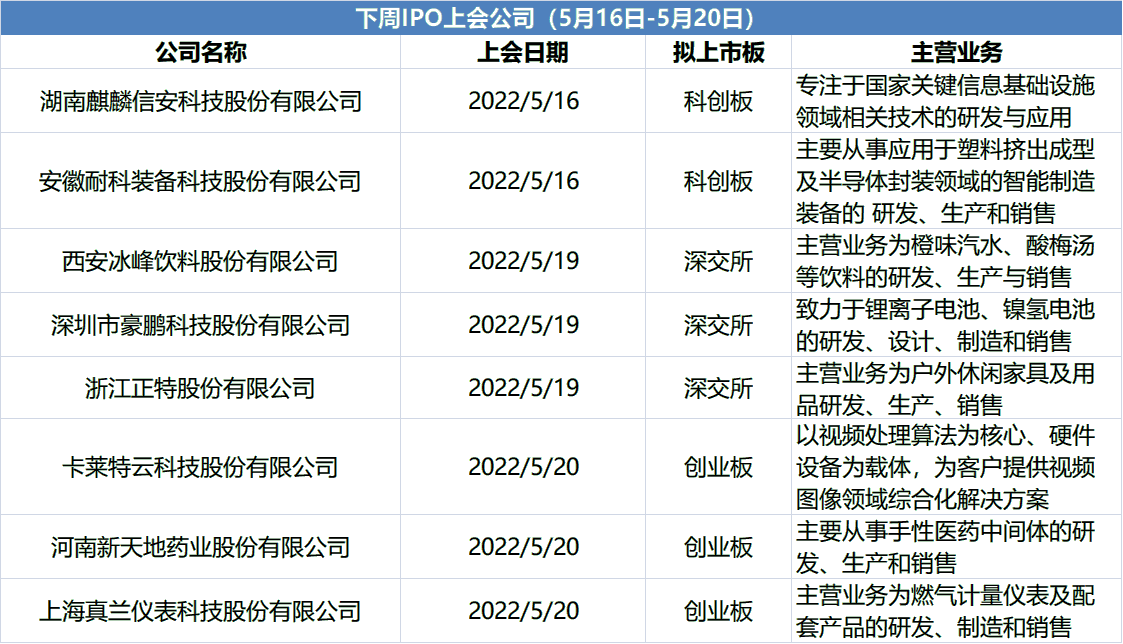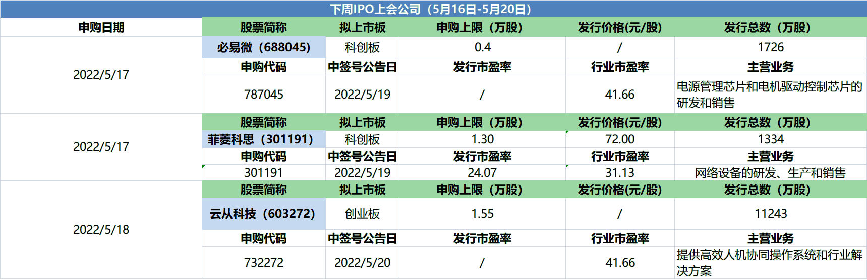 上周(5月9日-5月13日)及本周(5月16日-5月20日)IPO动态如下: