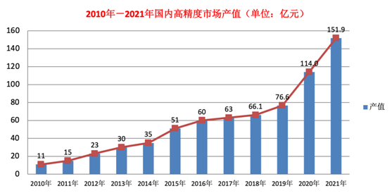 值得注意的是,2021年高精度位置服务相关收入达到151.9亿元,同比增长超33%。高精度市场近年来持续爆发,年均复合增长率接近24.5%。