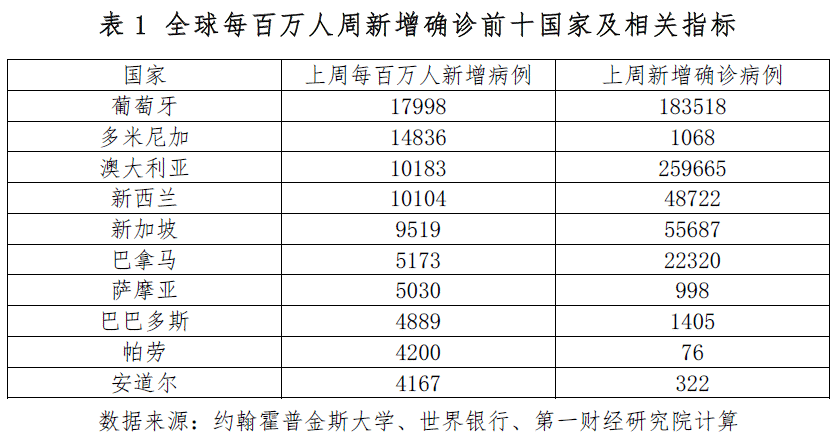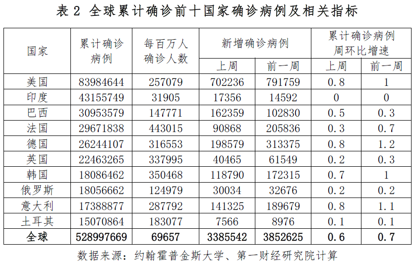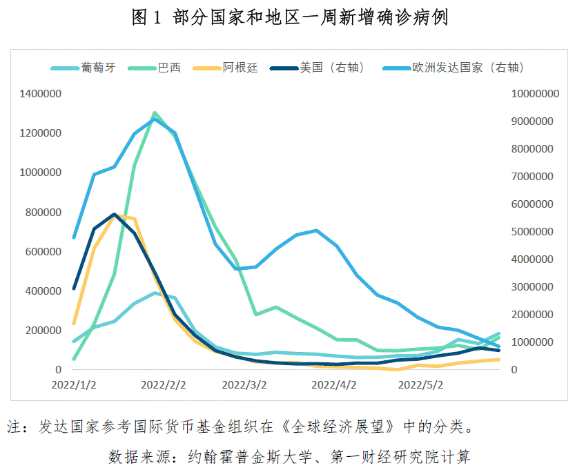 上周发达国家新增确诊226.2万例,为近6个月来最低;新增死亡病例6952例,自4月上旬以来持续下降。主要发达国家疫情趋于缓和,上周美国新增确诊70.2万例,环比下降11%,6周来首次下降;欧洲发达国家新增确诊85.4万例,自去年11月初以来首次降至100万例以下。在葡萄牙,奥密克戎BA.5亚型引发的疫情仍在加速蔓延,上周葡萄牙新增病例18.4万例;从每百万人新增确诊病例(1.8万例)来看,是上周全球疫情蔓延最快的国家。