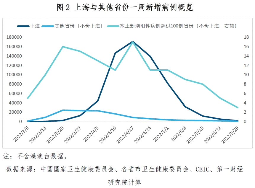 上周全国(不含港澳台地区与上海)新增本土阳性病例超过100例的省市有2个,创下3月以来最低;2个省市分别为北京(226例)、河南(102例),新增阳性病例均呈现下降趋势。5月29日开始,北京多个地区开始有序恢复正常生产生活秩序。
