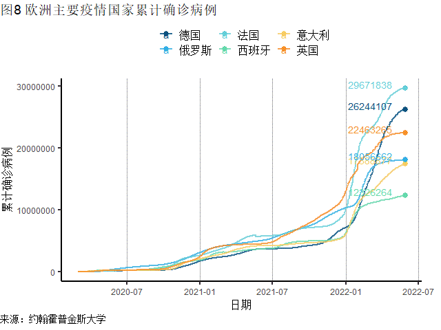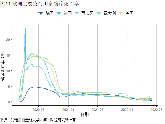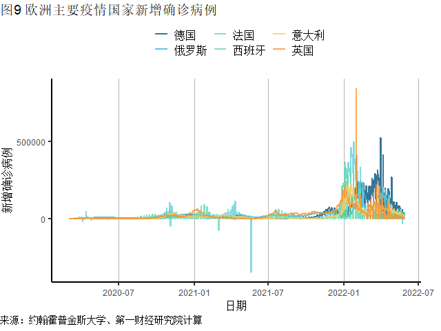 欧洲发达国家疫情进一步缓和,上周新增确诊85.4万例,自去年11月初以来首次降至100万例以下。欧洲主要发达国家中,上周德国(新增19.9万例)、意大利(新增14.1万例)、法国(新增9.1万例)、英国(新增4.0万例)新增病例环比降幅均超过25%。在葡萄牙,奥密克戎BA.5亚型引发的疫情仍在加速蔓延,上周葡萄牙新增病例18.4万例,创下近15周新高。