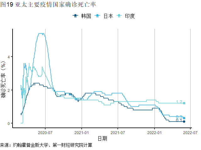亚太国家中,上周韩国新增确诊11.9万例,仍呈现下降趋势;澳大利亚、新西兰疫情也趋于缓和,上周两个国家新增确诊病例分别为26.0万例与4.9万例,环比降幅为25.2%与10.9%。
