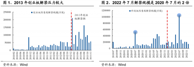 2013年创业板牛市的背后也有着一定规模的解禁。2013年创业板解禁规模是2012年的2.4倍,2022年科创板的解禁规模是2021年的1.3倍,增加的数量看似不多,但是7月单月的解禁规模占到2022年全年的33%,也几乎是2020年7月单月解禁规模的2倍,从供给端来看有些“压力山大”。