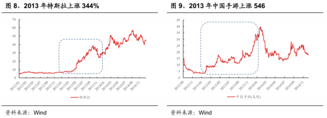 2013年的创业板,一切都是新的,2022的科创板,一切都非常眼熟。全球新兴产业共振也是2013年创业板牛市的另一特征,美股特斯拉2013年上涨344%,同年创业板某新能源公司上涨230%,当时还在美股上市的公司中国手游上涨546%,同年创业板某手游公司涨幅接近400%。而2022年,科创板公司行业分布前三为电子、电新和医药,所涉及领域在其他板块也有,业务并非全新,而是类似业务生态中更早期的公司。