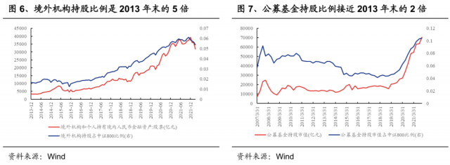 2022年的专业投资者带有2013年以来的记忆,2022年的机构投资者占比明显提升,市场参与者主体的变化也许不会带来“刻舟求剑”的效果。2016年外资加速进入A股,2019年之后机构化加速,A股审美由之前的炒小炒新逐渐向业绩和优质公司质地靠近。由于筹码结构中风险偏好较高的比例更高,以及业绩从底部向上修复的弹性更大,所以中小成长更容易成为反弹先锋(《中小成长为何通常是反弹先锋?》)。科创板作为市值更小的一类公司,也受益于流动性改善的外溢效应,但是否值得重仓买,可能更多是个股问题,而不是板块问题。