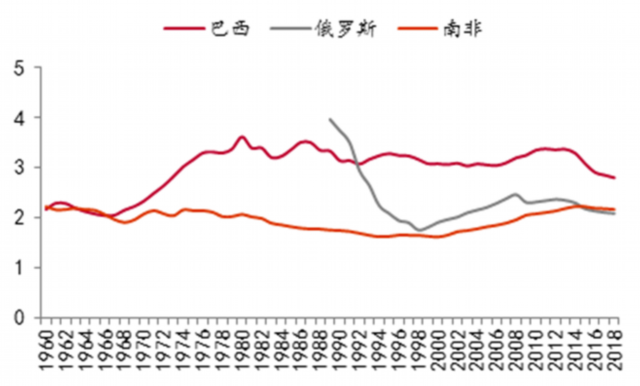 南非、俄罗斯、巴西GDP在全球占比(2010年美元不变价格)