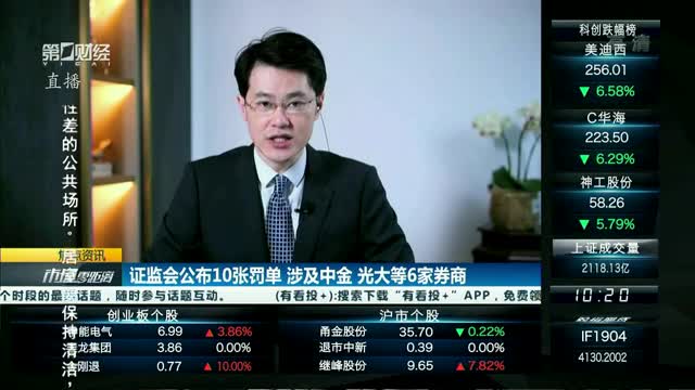 6月10日,证监会网站连续公布10条处罚决定,涉及中金公司、光大证券、中信证券、信达证券、海通证券、国融证券等多家机构和相关人员,处罚内容包括出具警示函、责令整改、监管谈话等。
