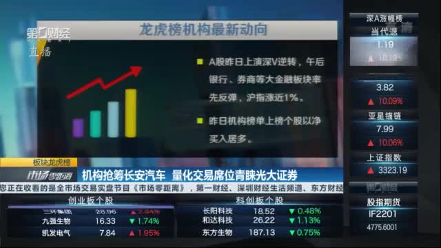 A股昨日上演深V逆转,午后银行、券商等大金融板块率先反弹,沪指涨近1%。昨日机构榜单上榜个股以净买入居多。长安汽车昨日涨停,股价创年内新高。龙虎榜数据显示,机构席位单日净买入8699.93万元,机构三日净买入逾2亿元。