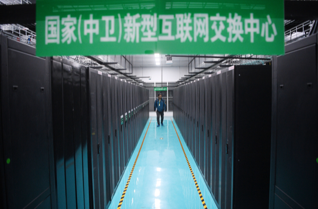 在西部云基地拍摄的由中国联通建设的国家(中卫)新型互联网交换中心机房(3月1日摄)。新华社