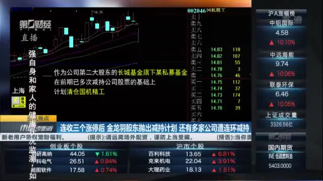 在收获连续三个涨停之后,昨晚,金龙羽股东抛出了减持计划。当天披露的公告显示,还有多家公司遭遇了股东的大额、连续减持。