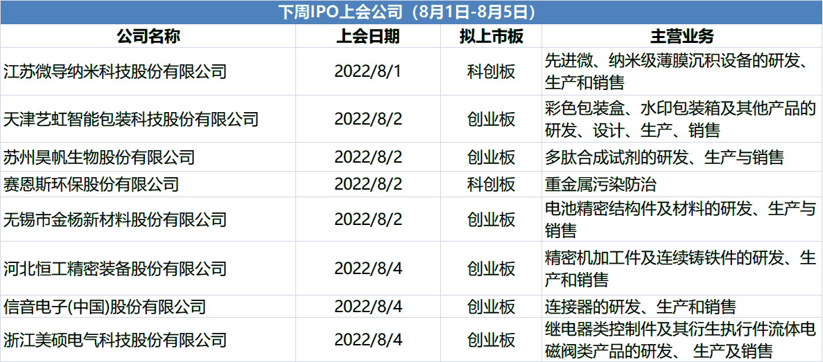 本周(7月25日-7月29日)及下周(8月1日-8月5日)IPO动态如下: