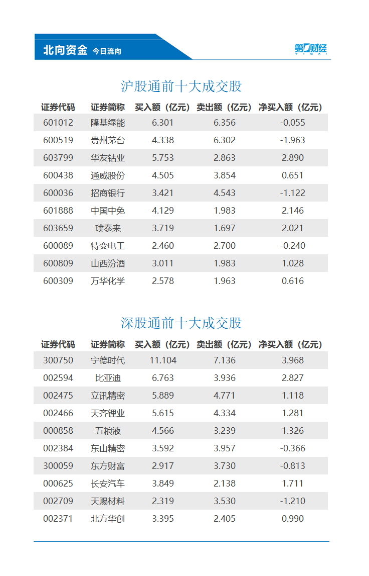 前十大成交股中,宁德时代、华友钴业、比亚迪净买入额位列前三,分别获净买入3.97亿元、2.89亿元、2.83亿元。