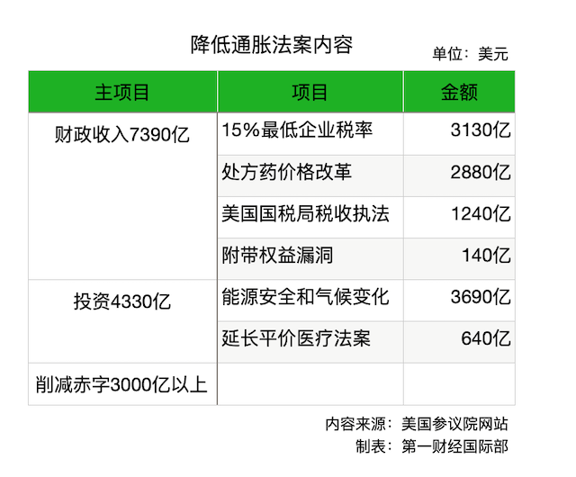 根据美国参议院的文件介绍,该法案将实现“历史性的赤字缩减,以对抗通货膨胀”。