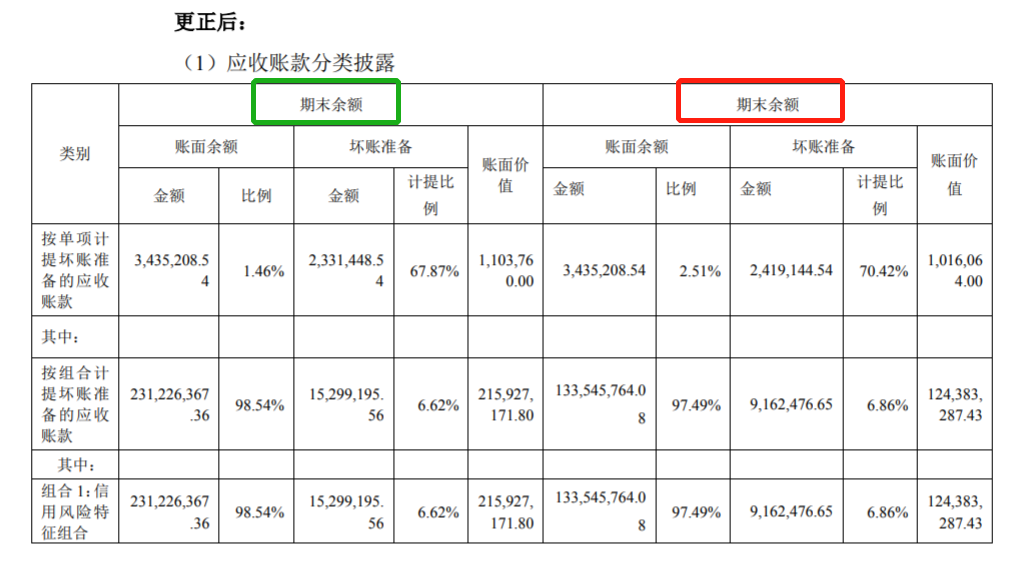 另一处是,公司应收账款期初账面余额显示全为0。以及公司公告中依旧误将期初余额写为期末余额,不过财报中显示正确。