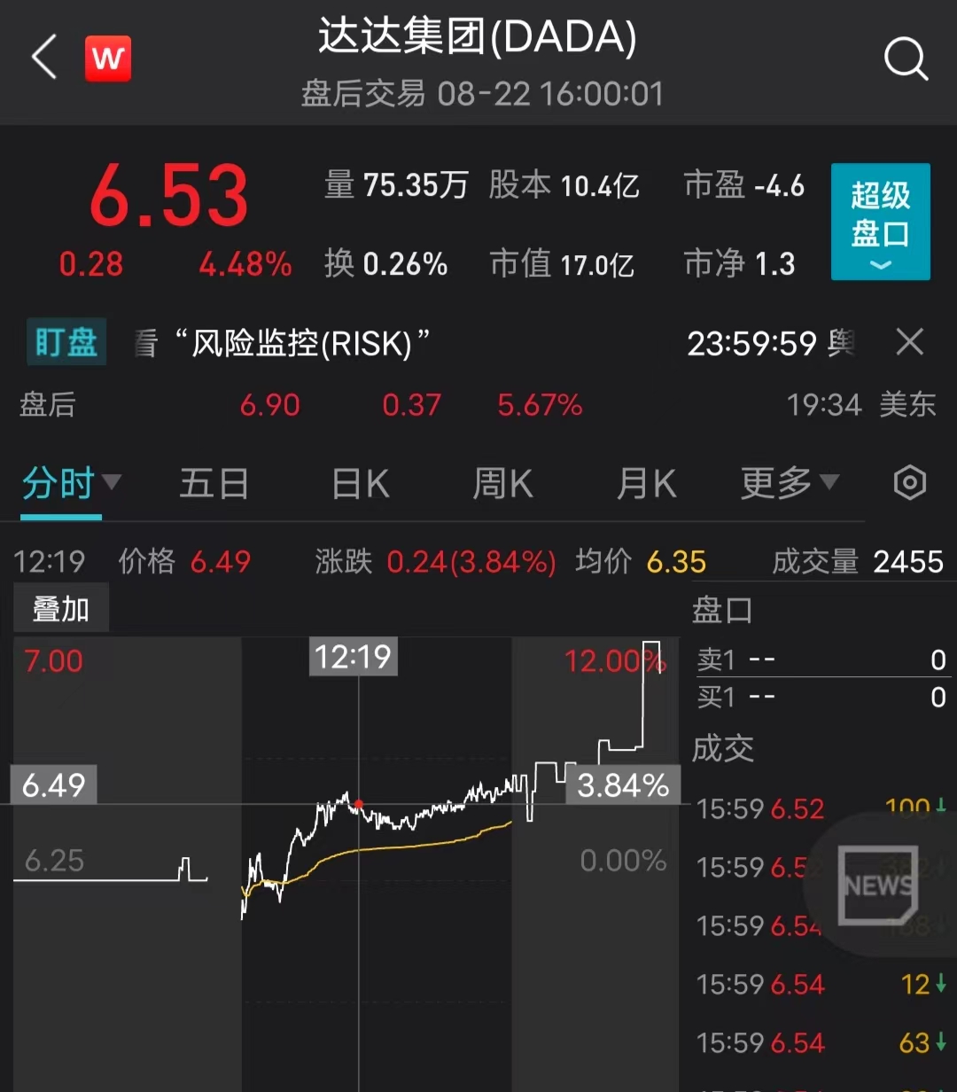 股价表现上,过去一年达达股价持续下滑,截至发稿股价为6.53美元,较去年同期的19.5美元约跌去三分之二。
