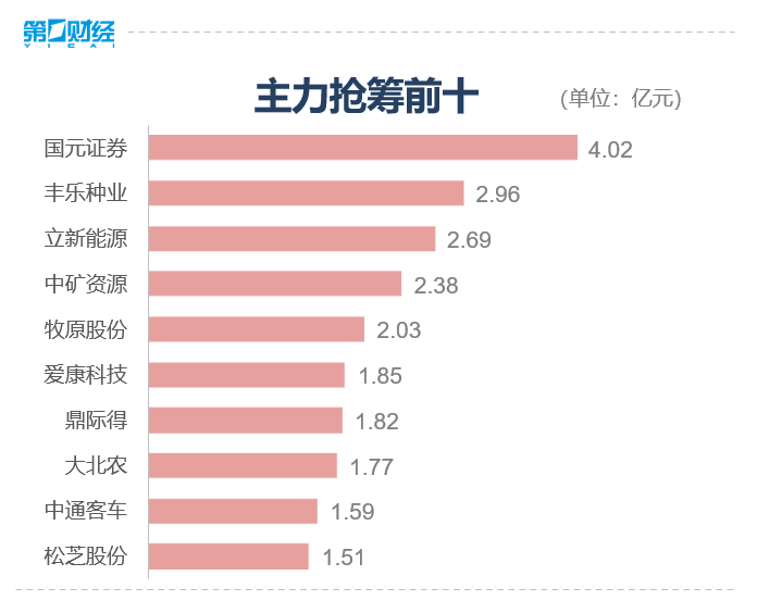 具体到个股来看,国元证券、中矿资源、德龙汇能分别获主力净流入18.99亿元、5.38亿元、5.26亿元。净流出方面,宁德时代、江淮汽车、亿纬锂能分别遭抛售9.12亿元、7.30亿元、5.23亿元。