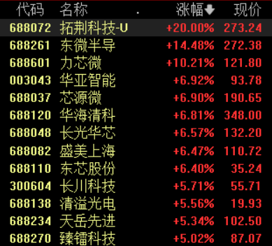 8月29日,半导体及元件板块反弹。截至发稿,拓荆科技-U涨停,东微半导涨超14%,力芯微涨超10%,芯源微、东芯科技、长川科技等多股跟涨。
